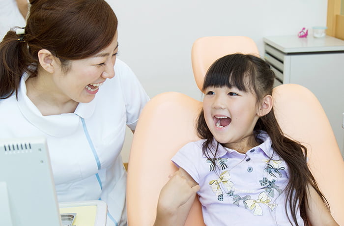 治療の際にはお子様が「歯医者さんは怖い」というトラウマを持たないよう、お口を開ける練習や器具になれるところから始め、一人ひとりの成長速度や性格、適正に合わせて進めていきます。